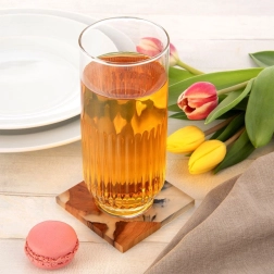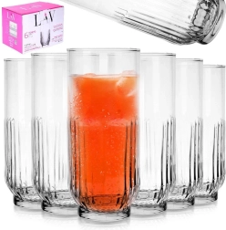 Ce set de 6 verres allie design épuré et fonctionnalité. Le verre transparent avec un rainurage vertical élégant donne aux boissons une apparence attrayante tout en garantissant une prise en main confortable. La forme haute est idéale pour servir de l’eau, des limonades maison, du thé glacé et des boissons mixtes.