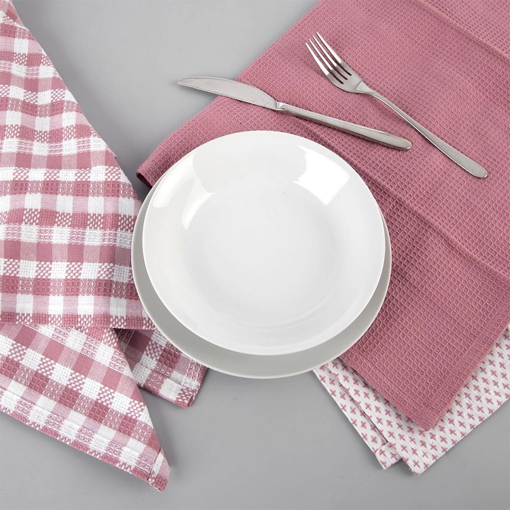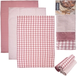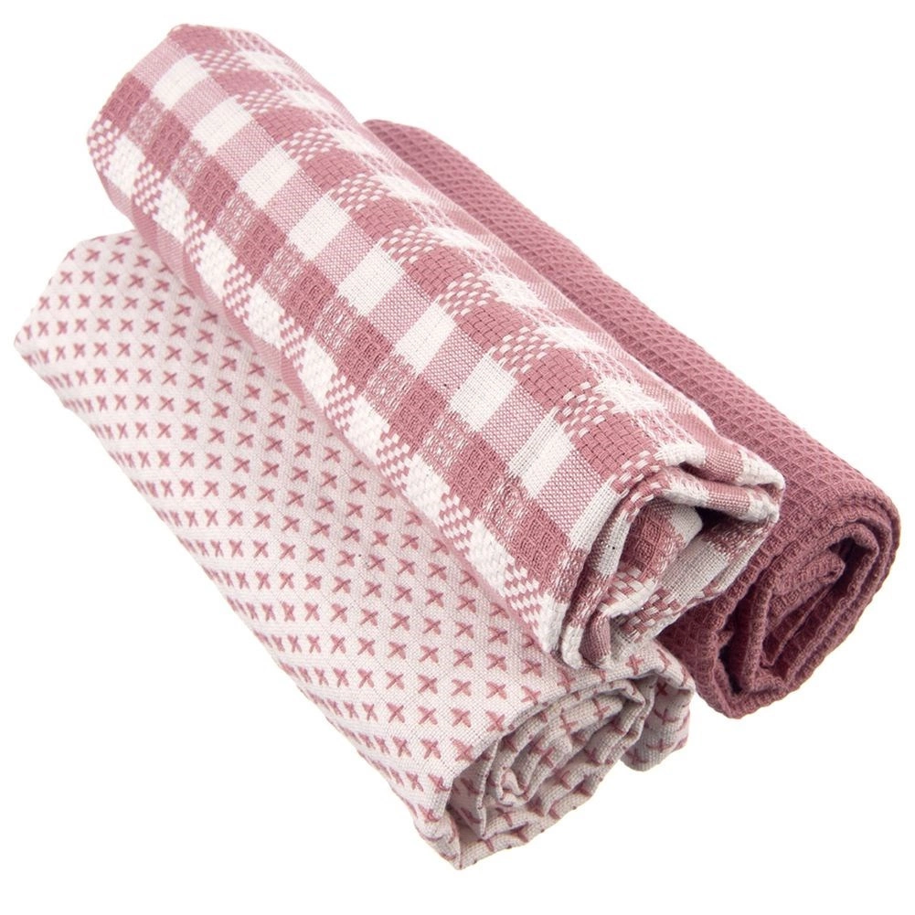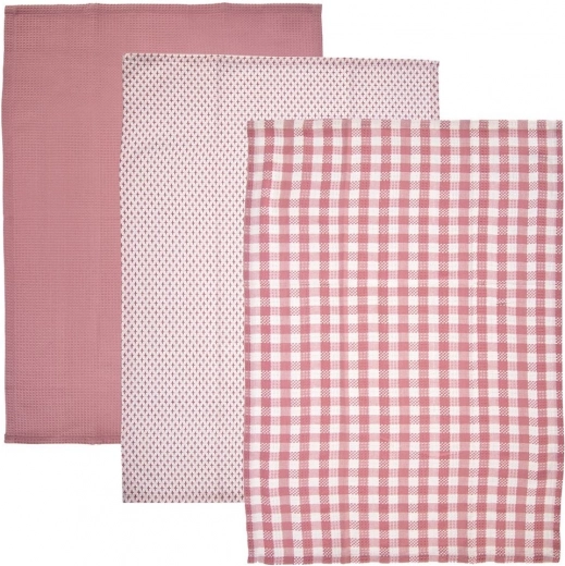 Découvrez des torchons de cuisine de qualité alliant fonctionnalité et style. Trois motifs différents dans de délicates nuances de rose apportent une touche fraîche à votre cuisine, tandis que la fibre coton naturelle assure un séchage rapide et efficace de la vaisselle comme des surfaces.