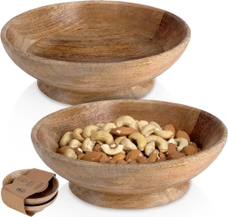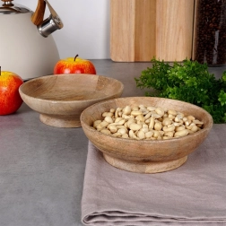 Élégant lot de deux bols en bois de manguier alliant style naturel et praticité. Idéaux pour les salades, les snacks ainsi que les plats chauds et froids. Grâce à leur teinte naturelle du bois, ils s’harmonisent avec toute table, et leur résistance à l’humidité et absence d’absorption des odeurs facilitent l’entretien. Chaque bol mesure 16 cm de diamètre, 5 cm de hauteur et offre une capacité de 400 ml.