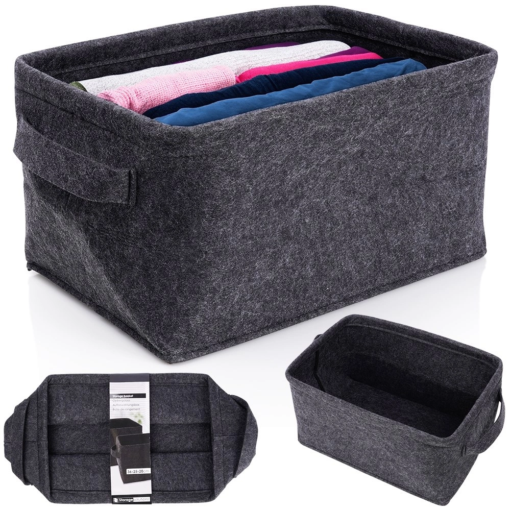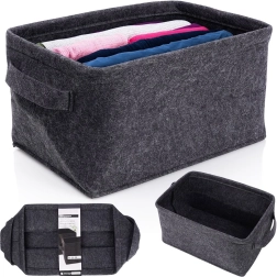 Ce panier pliable en feutre aux dimensions 36 × 27 × 20 cm est un excellent choix pour organiser textiles, jouets, accessoires et fournitures de bureau. Grâce à sa toile de feutre épaisse et robuste, il conserve sa forme tout en restant léger et facile à transporter.