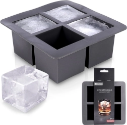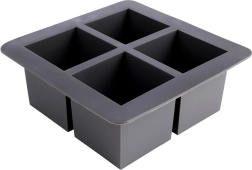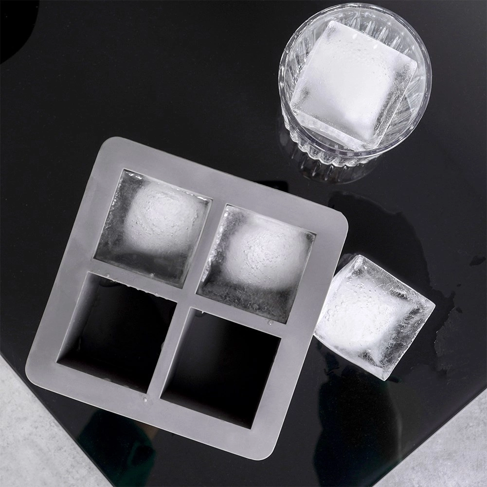 Pratique, ce moule en silicone forme 4 très gros glaçons carrés de 5,5 × 5,5 × 5,5 cm, qui fondent plus lentement et gardent les boissons fraîches plus longtemps sans les diluer inutilement. Grâce au silicone flexible, les glaçons se démoulent facilement et le moule est simple à nettoyer, y compris au lave-vaisselle.