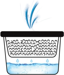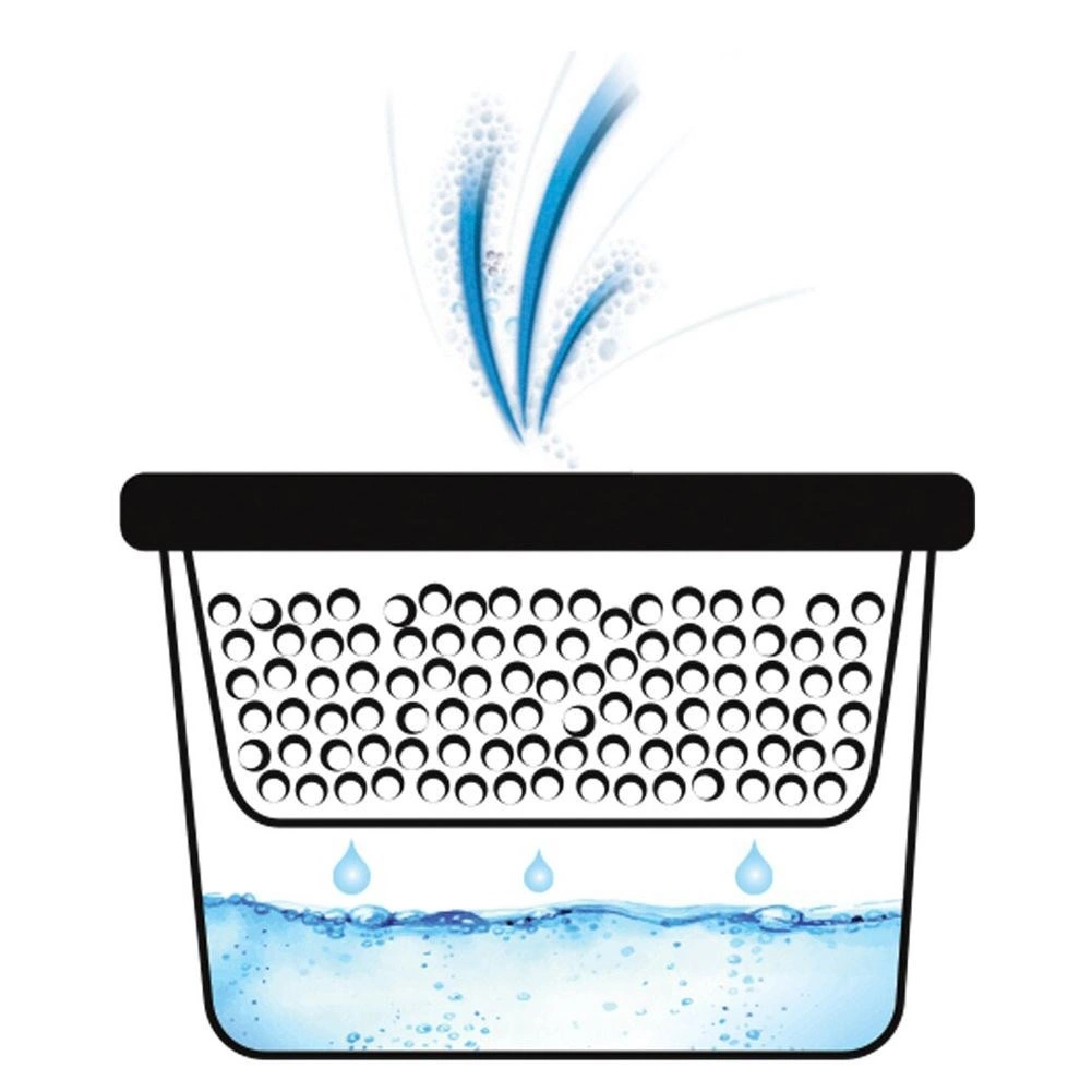 • Utilisation immédiate – il suffit de le poser, les granulés commencent à absorber l’humidité de l’air et à la condenser au fond du récipient.