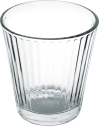 Le rainurage vertical confère aux verres un look moderne et assure une prise sûre, même avec des boissons froides sujettes à la condensation.
