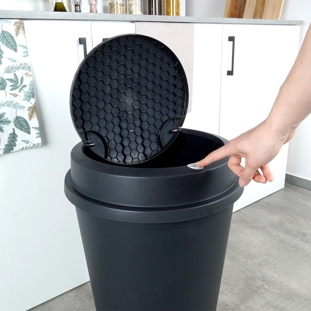 Cette poubelle noire de 47 litres est conçue pour le confort et la propreté au quotidien. Elle dispose d’un couvercle à deux modes pour un dépôt rapide par basculement et d’une ouverture par bouton, aidant à réduire la propagation des odeurs. Son design intemporel s’intègre parfaitement aux intérieurs modernes comme classiques.