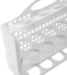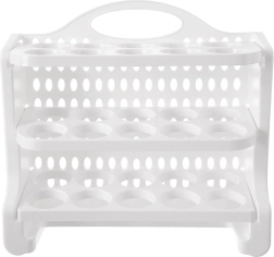 Gardez votre réfrigérateur parfaitement organisé. Le support à œufs ORION à trois étages, d’une capacité de 30 pièces, est fabriqué en plastique de qualité, sans danger pour la santé, de couleur blanche. Chaque niveau dispose d’emplacements dédiés empêchant les œufs de rouler et minimisant le risque de dommage. Grâce à ses dimensions compactes 28 × 10 × 22,5 cm, il trouve facilement sa place sur une étagère ou dans la porte du réfrigérateur (vérifiez au préalable la compatibilité avec votre modèle).