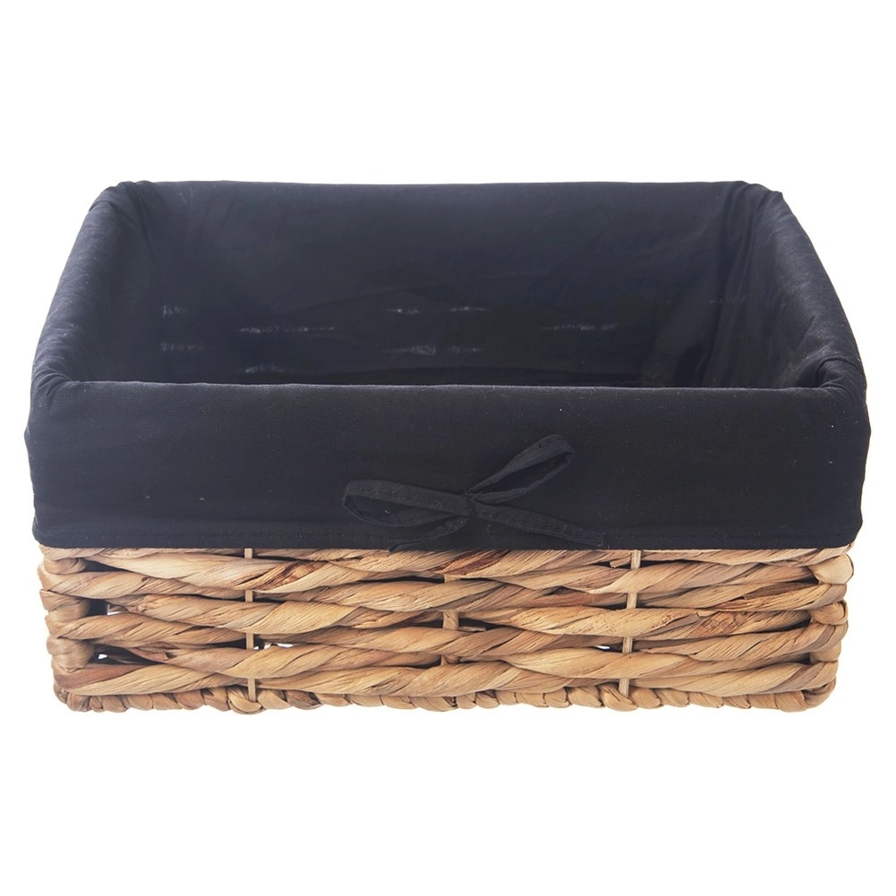 Ce panier de rangement élégant en matériau naturel deviendra un allié pratique dans le salon, la salle de bain, la chambre ou le dressing. Grâce à son tressage artisanal robuste et à sa structure métallique, il accueille tout, des cosmétiques et accessoires au linge et aux petits objets. L’insert textile noir avec nœud protège le contenu et apporte une touche moderne au panier.