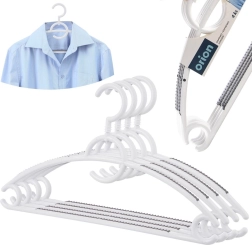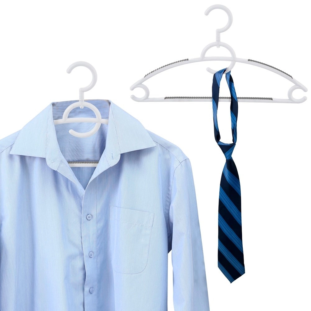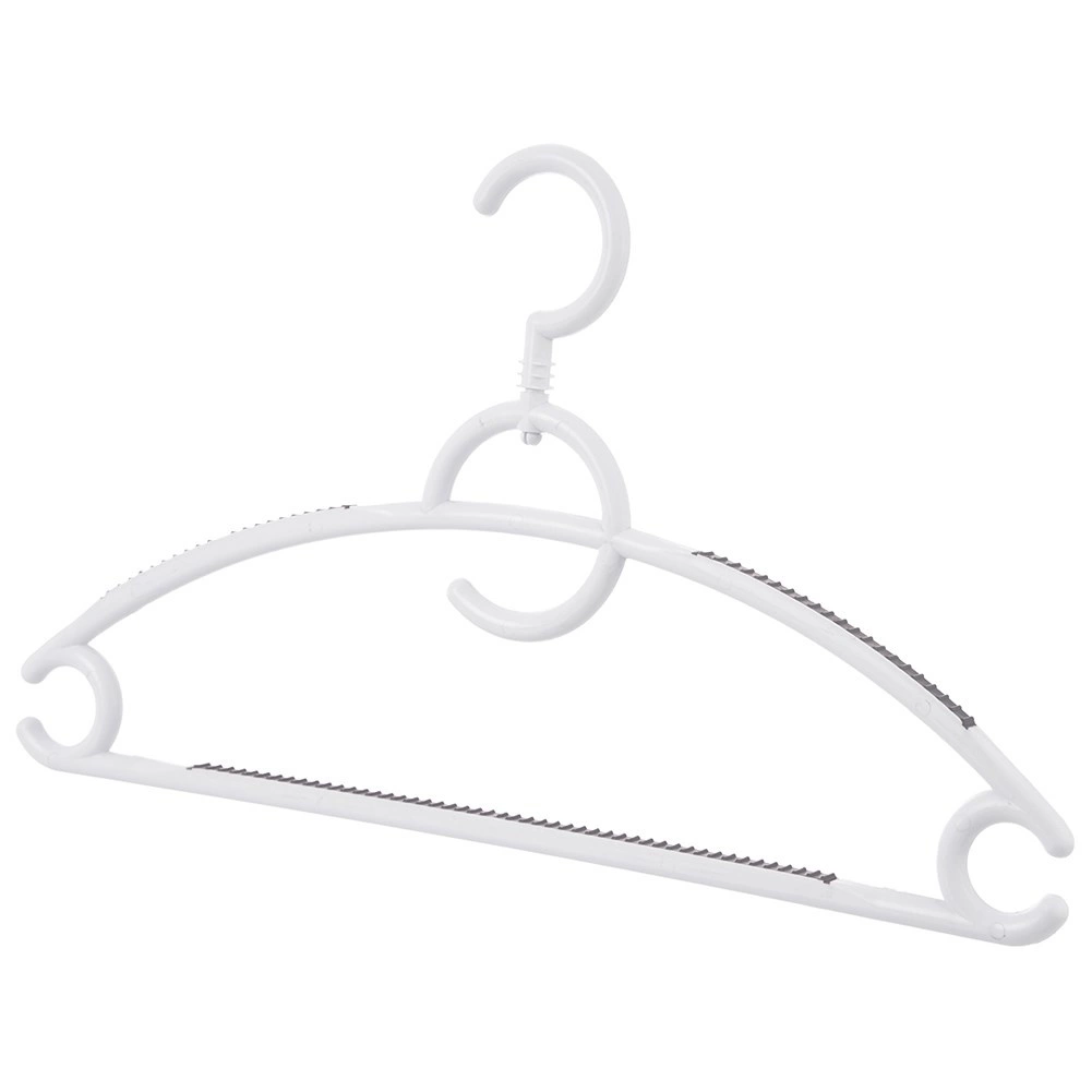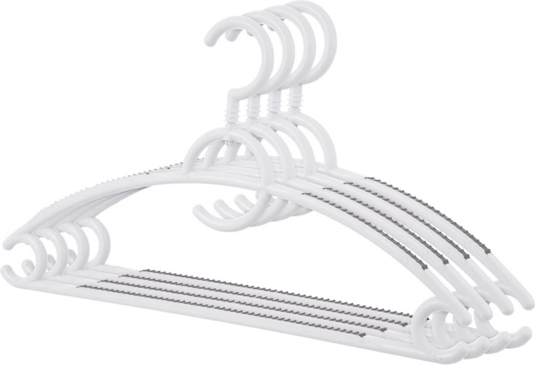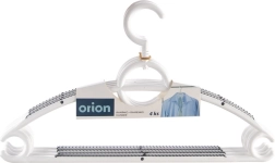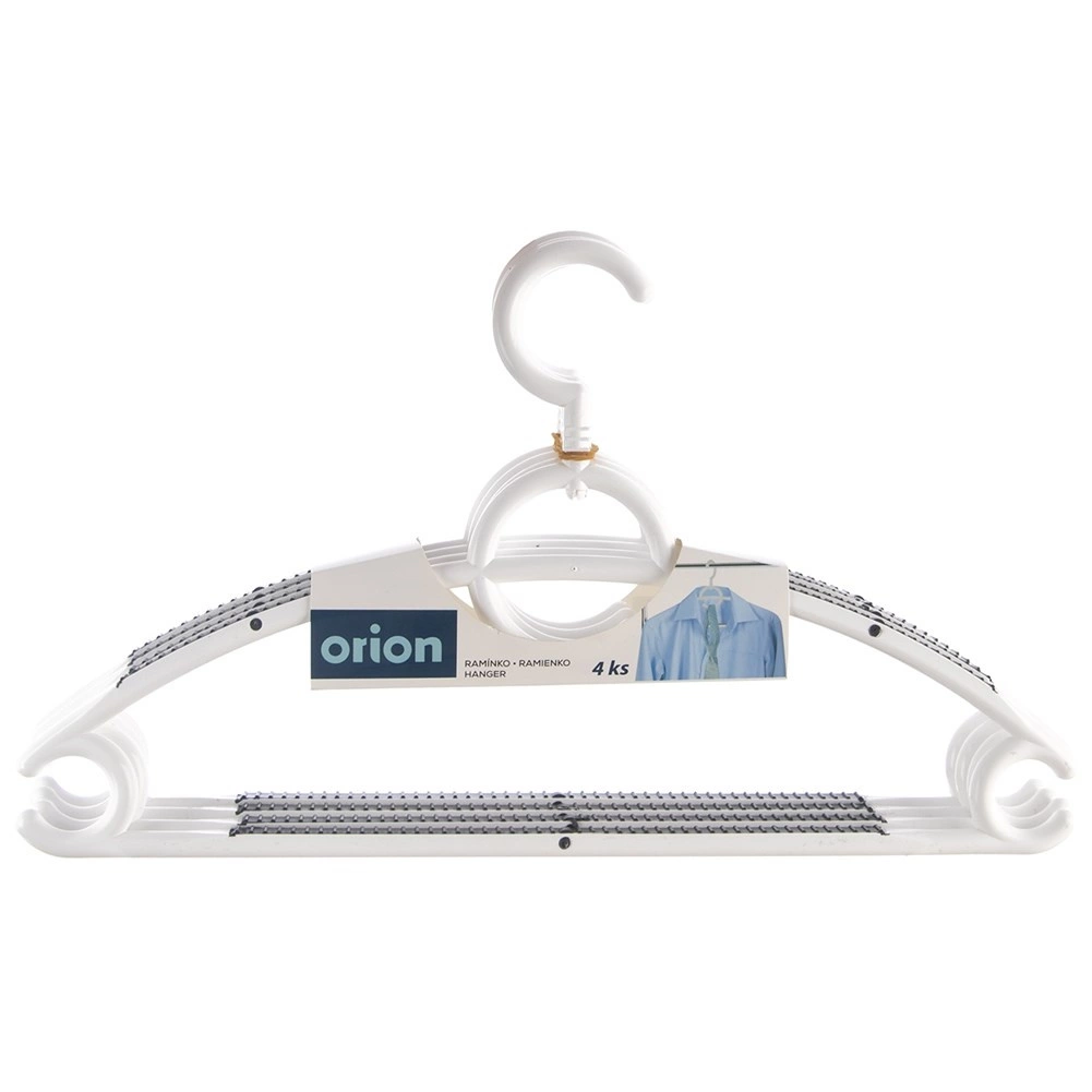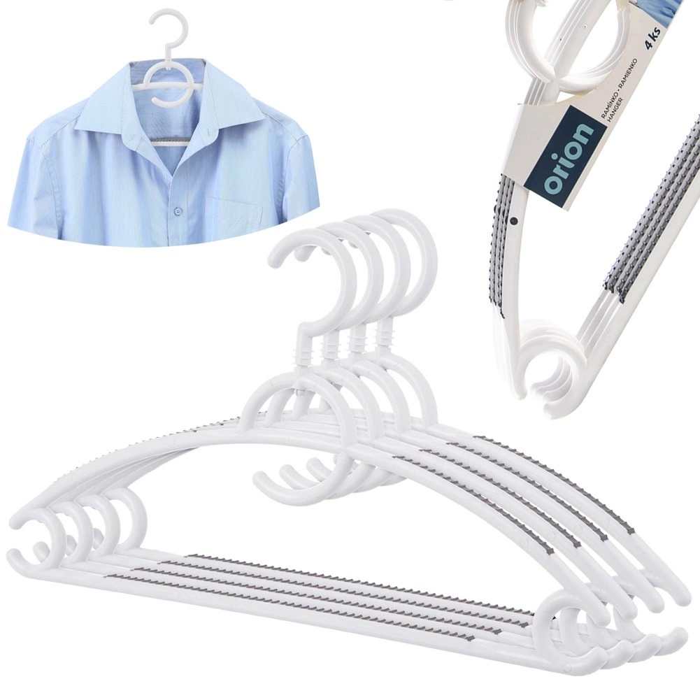 Lot universel de 4 cintres blancs avec crochet pivotant et inserts antidérapants pour suspendre en toute sécurité chemises, robes, pantalons et vestes. Structure robuste, multiples points de suspension et gain de place dans l’armoire pour un rangement impeccable. Qualité ORION selon les normes européennes.