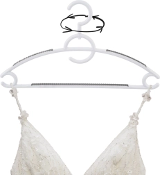 Le crochet pivote librement pour orienter le cintre idéalement dans l’armoire ou sur un portant. Manipulation rapide sans torsion.