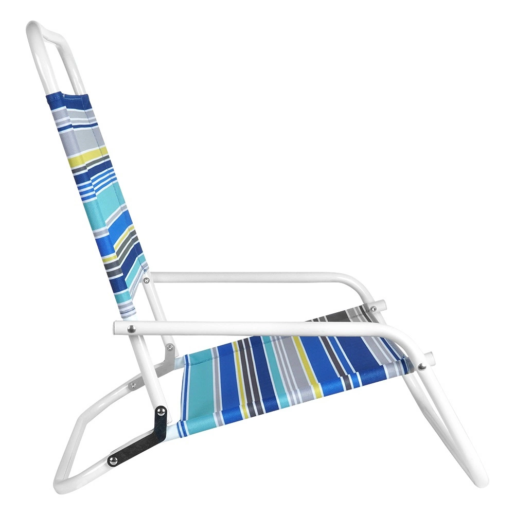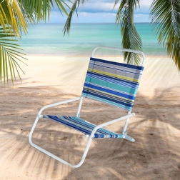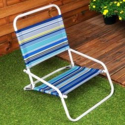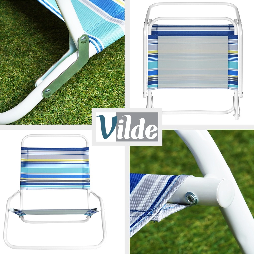 Profitez de moments de détente au bord de l’eau avec la chaise de plage pliable Vilde. Légère structure métallique blanche, tissu polyester résistant à rayures bleues et assise basse pour se relaxer à la mer, au lac ou au jardin. La chaise se plie facilement, est compacte à transporter et supporte jusqu’à 110 kg.