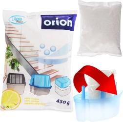 La recharge citron pour absorbeur d’humidité avec des granulés de chlorure de calcium de 450 g assure un assèchement efficace, l’élimination des odeurs et parfume agréablement l’intérieur. Elle est universelle pour la plupart des absorbeurs à recharge et offre une longue durée de 2 à 5 mois dans des pièces jusqu’à 20 m².