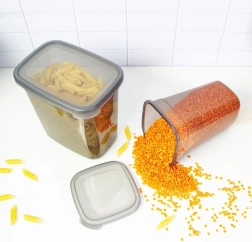 Pratique récipient de cuisine de 1,85 l avec couvercle à clip qui garde vos aliments frais plus longtemps. Grâce au corps transparent de couleur gris fumé, vous gardez toujours le contenu sous contrôle. Fabriqué en plastique résistant sans BPA, il convient au réfrigérateur comme au congélateur. Pour une utilisation facile en cuisine, il supporte également le chauffage au micro-ondes sans couvercle et le lavage au lave-vaisselle. Idéal pour organiser le garde-manger – hermétique, empilable et sûr pour les aliments.
