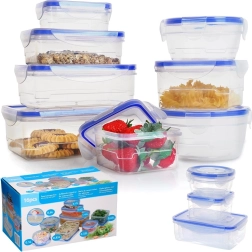 Ce set universel de boîtes transparentes aide à maintenir l’ordre dans la cuisine et la fraîcheur des aliments. Grâce à leur construction robuste sans BPA et à leur joint en silicone fiable, les ingrédients restent frais plus longtemps et à l’abri des odeurs indésirables. Les parois transparentes permettent de vérifier rapidement le contenu sans ouvrir.
