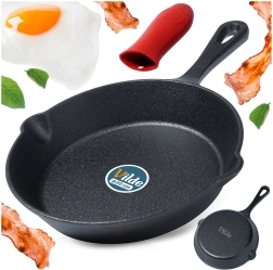 Cette poêle compacte en fonte de 20 cm est idéale pour frire, saisir, rôtir et servir les accompagnements. Le corps massif en fonte chauffe rapidement et de manière uniforme et retient longtemps la chaleur, pour des plats qui restent chauds et juteux plus longtemps. Deux becs verseurs pratiques facilitent l’écoulement des sauces ou des graisses, et le manchon en silicone rouge accroît la sécurité de manipulation.