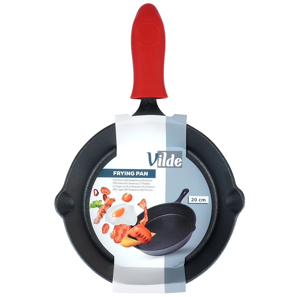 Un manchon en silicone rouge pour la poignée est inclus pour une prise confortable et sûre lors de la cuisson comme du service.