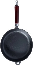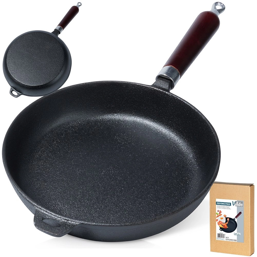 La poêle en fonte CAST LINE 24 cm est un choix massif et durable pour préparer viandes, légumes, pommes de terre et en-cas rapides. La fonte chauffe uniformément et retient parfaitement la chaleur, permettant une cuisson efficace à la poêle comme au four tout en maintenant les plats chauds plus longtemps. Grâce au manche en bois, la poêle se tient confortablement et en toute sécurité ; la petite anse aide au transport et au versement.