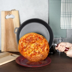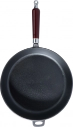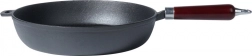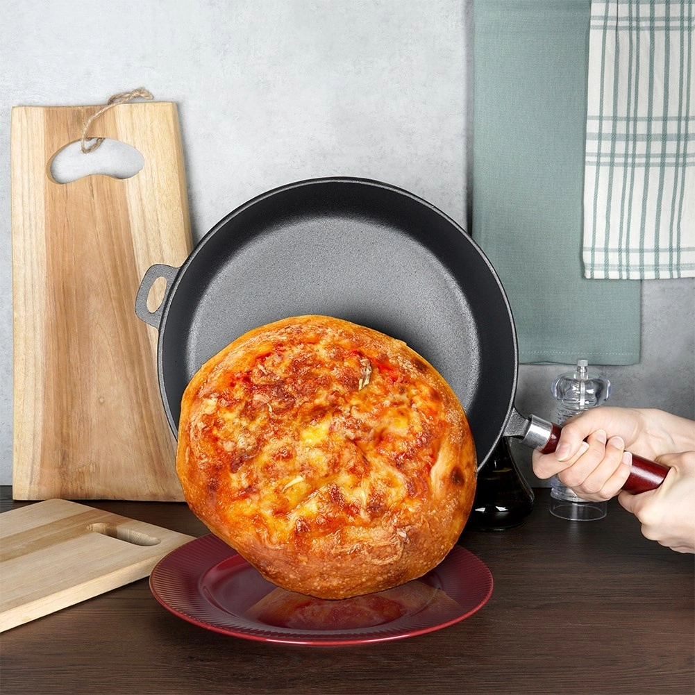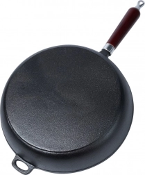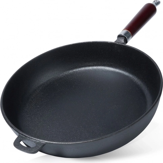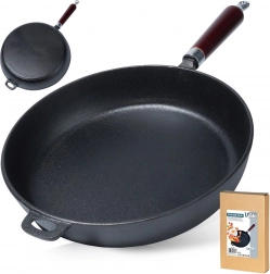 Poêle en fonte universelle de 30 cm de diamètre pour la cuisson quotidienne à la maison comme en plein air. Grâce à son corps massif, elle conduit et retient parfaitement la chaleur, possède des parois profondes, une poignée en bois ergonomique et une anse auxiliaire pour un transport sécurisé. Compatible avec l’induction, le gaz, l’électricité, la vitrocéramique, l’halogène et le four après retrait de la poignée.