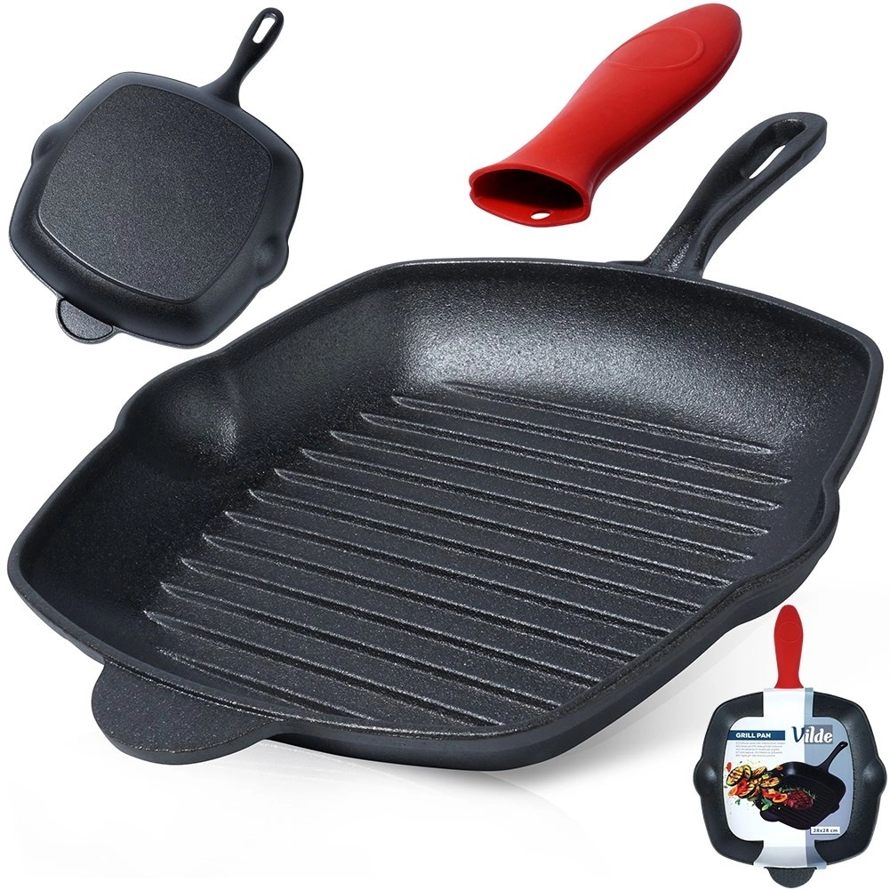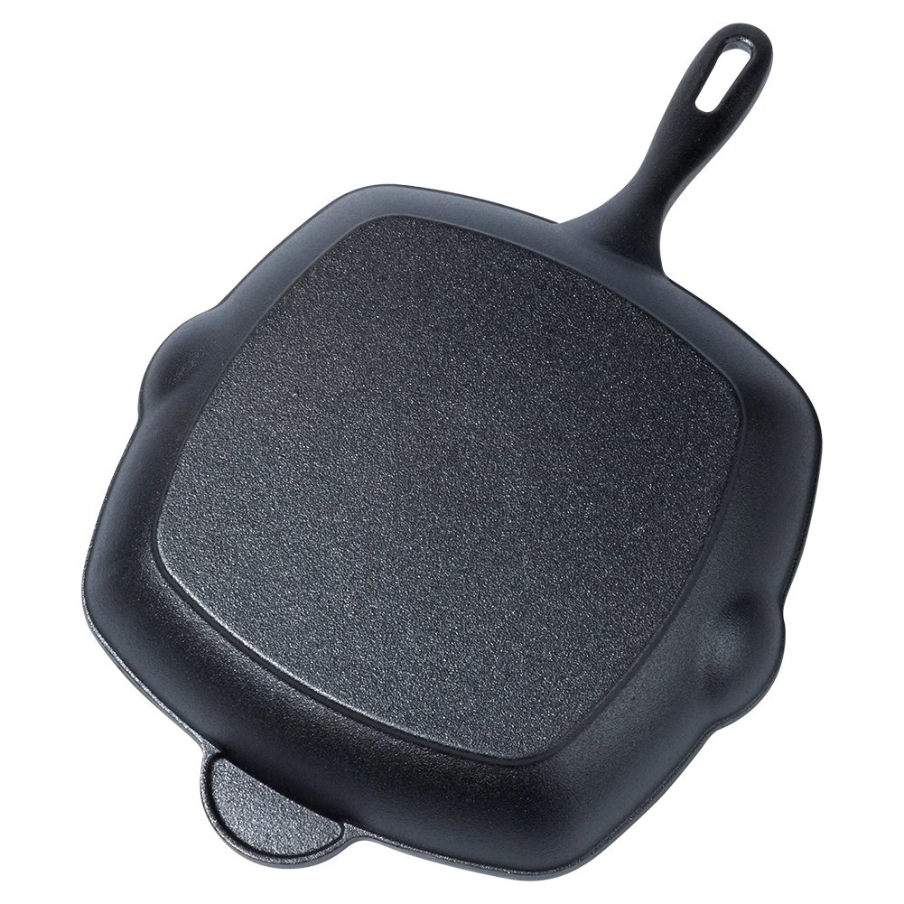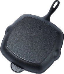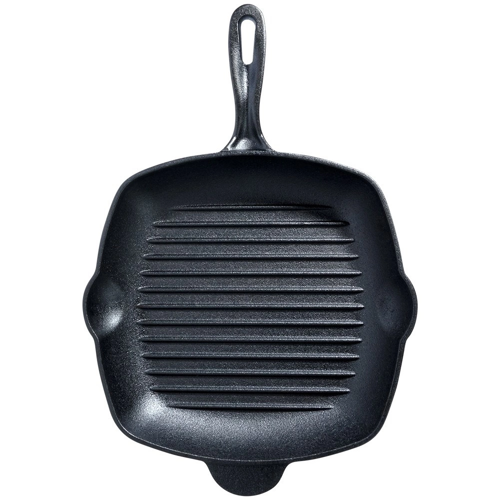 La poêle en fonte avec rainurage marqué vous permet de griller à la maison comme sur un barbecue extérieur. La fonte conduit et retient parfaitement la chaleur, ce qui permet une saisie intense, un cœur juteux et de belles marques de grill. Les becs verseurs des deux côtés facilitent l’évacuation de l’excès de graisse et le service des sauces.