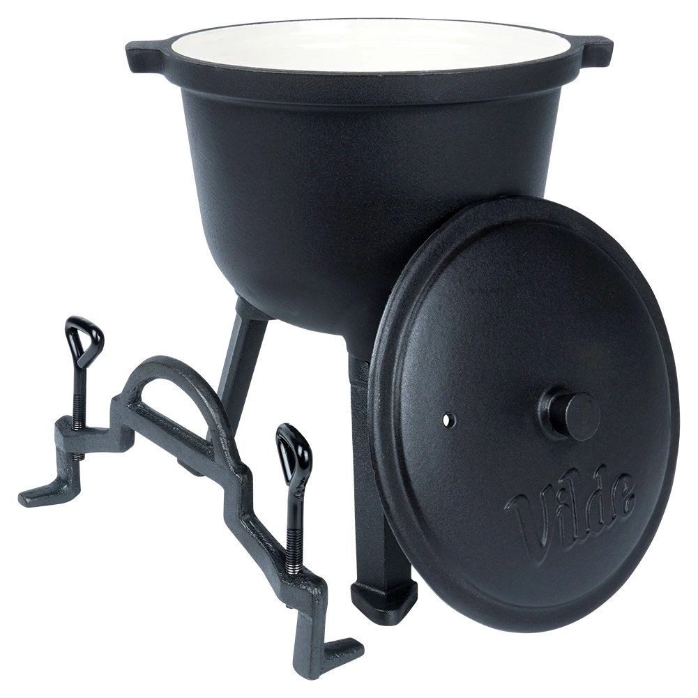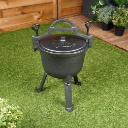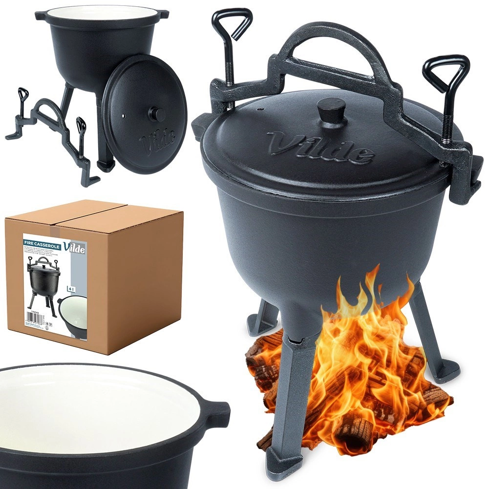 Ce chaudron durable en fonte noire avec intérieur émaillé beige retient et transmet uniformément la chaleur, pour des plats plus rapides, juteux et aromatiques. Grâce à ses trois pieds stables, il est sûr à utiliser au-dessus d’un foyer ou de braises. Convient pour cuire, rôtir, mijoter et frire en plein air.