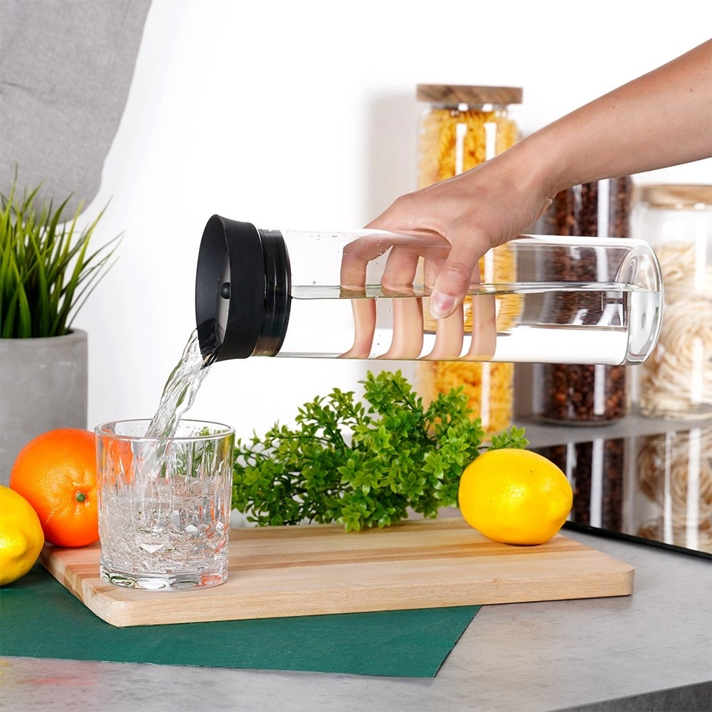 Cette carafe polyvalente est fabriquée en verre borosilicaté transparent, reconnu pour sa résistance et son élégance. Le couvercle alliant silicone et acier inoxydable assure un versement propre sans gouttes tout en protégeant la boisson des impuretés et des insectes.