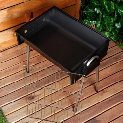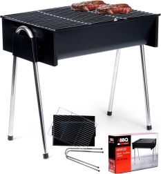Ce barbecue portable combine des dimensions compactes avec une construction robuste pour des grillades pratiques en voyage comme à la maison. Ses dimensions monté sont de 48 × 33 × 46 cm, et une fois plié seulement 48 × 33 × 12 cm, il se range donc aisément dans le coffre de la voiture ou un placard.