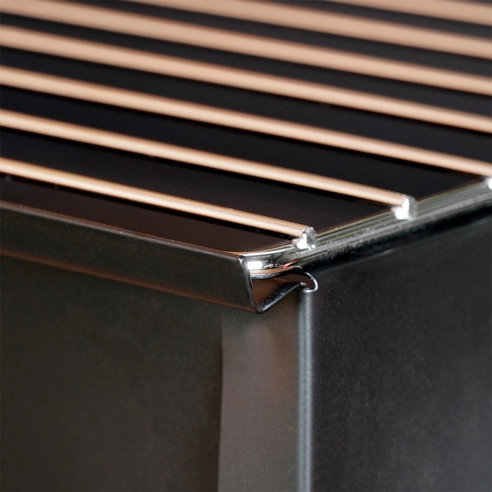 Des matériaux résistants assurent une longue durée de vie : le corps en acier avec revêtement en peinture poudrée résiste aux hautes températures et aux intempéries, tandis que la grille chromée est facile à entretenir et amovible pour un nettoyage rapide.