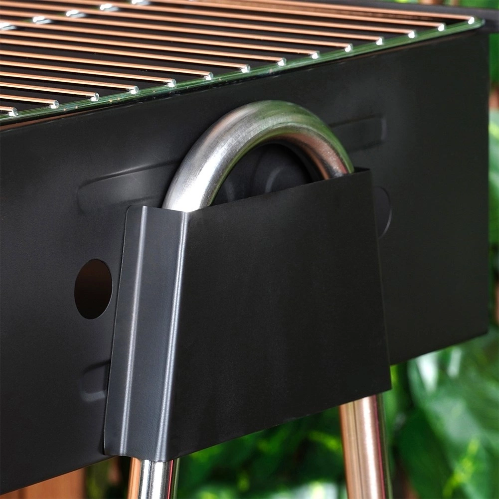 Des pieds tubulaires robustes avec embouts assurent la stabilité sur différentes surfaces et des grillades en toute sécurité en extérieur.
