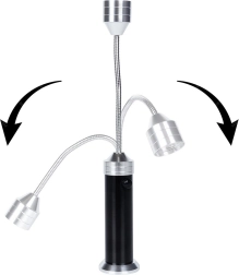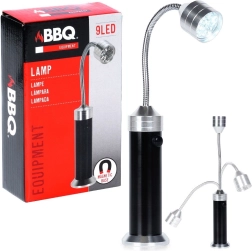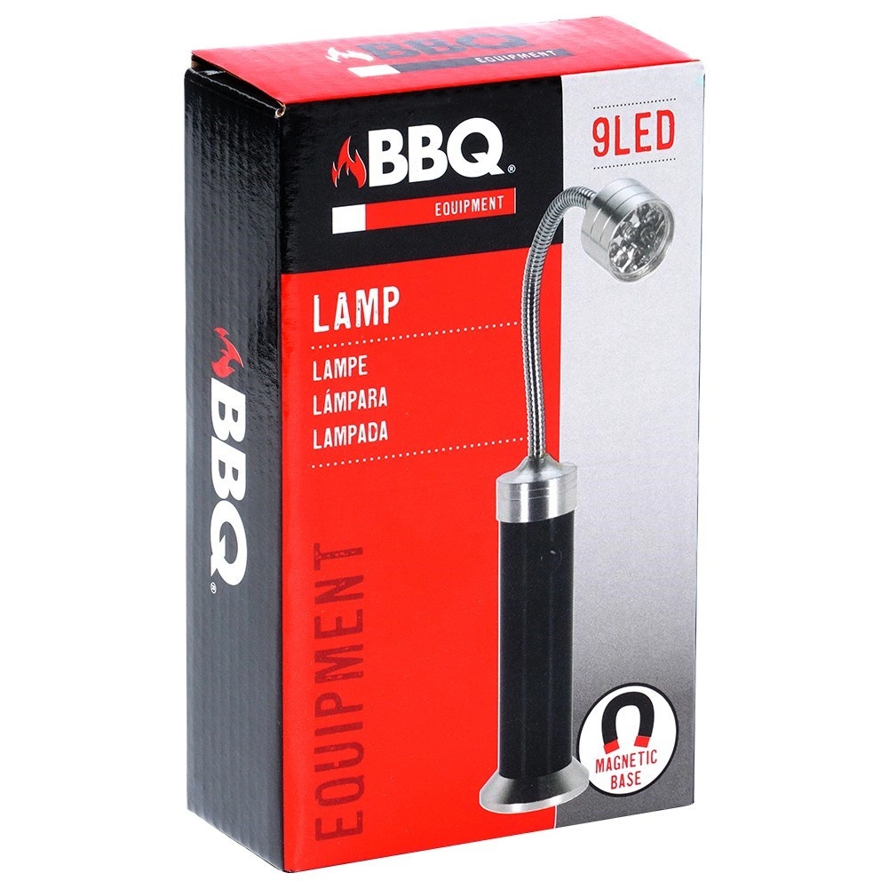 Le corps robuste en aluminium au fini noir et argent est résistant aux intempéries et aux températures élevées. 9 LED économes produisent un faisceau lumineux et concentré pour un barbecue sûr et précis. Commande simple par bouton et remplacement rapide des piles font de cette lampe un assistant pratique pour la terrasse, le balcon et même l’atelier.