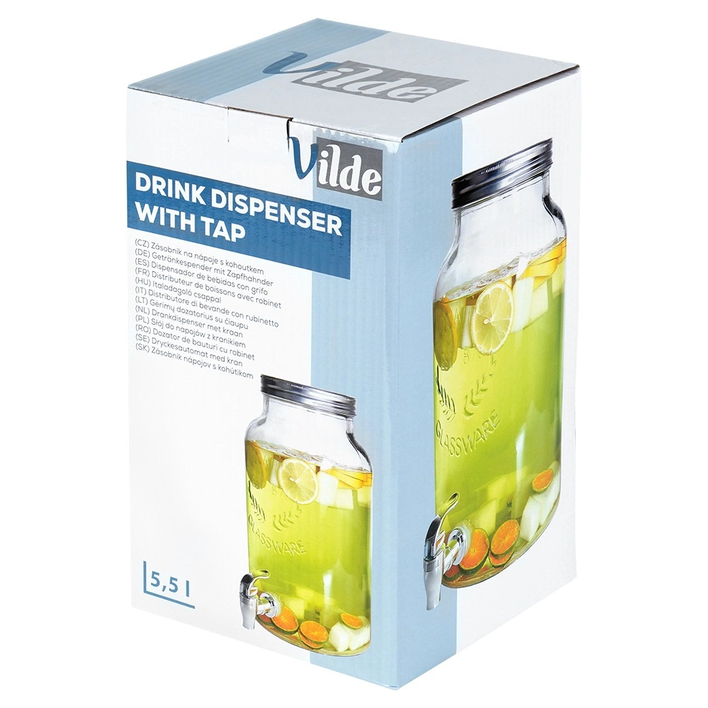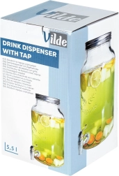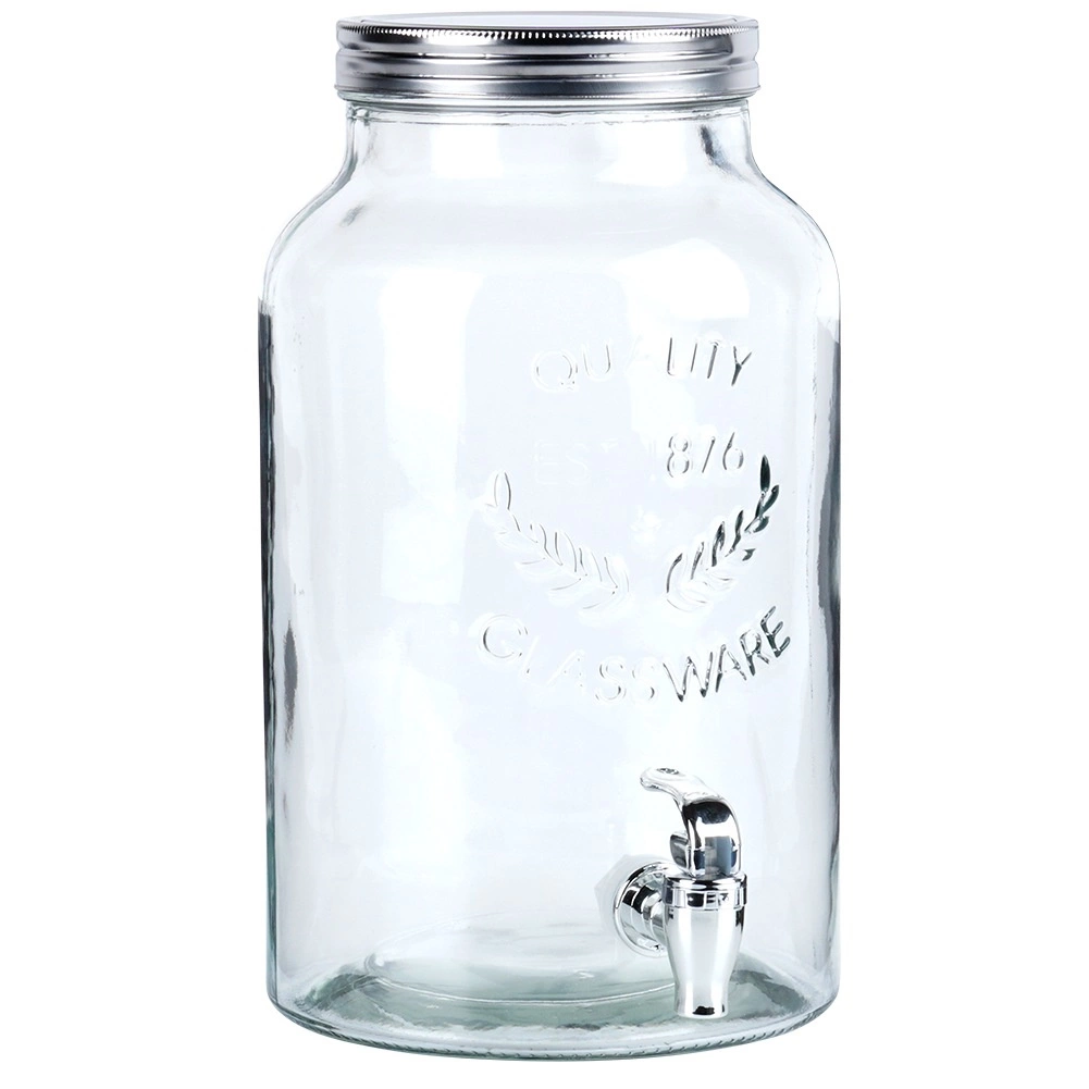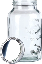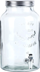 Le couvercle à vis protège le contenu des insectes, le large goulot permet un remplissage facile et l’ajout de glaçons et de fruits. Le verre épais avec inscription en relief souligne l’esthétique. Le distributeur est conçu pour les boissons froides et rafraîchies (non adapté aux boissons chaudes).
