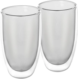 Élégant lot de deux verres thermiques à double paroi d’une capacité de 460 ml, qui maintiennent vos boissons plus longtemps à la température idéale. Grâce au verre borosilicate, ils sont légers, résistants et isolants thermiques – les boissons chaudes ne brûlent pas les mains et les froides condensent moins. Le design transparent moderne met superbement en valeur le café latte, le thé et les boissons froides.