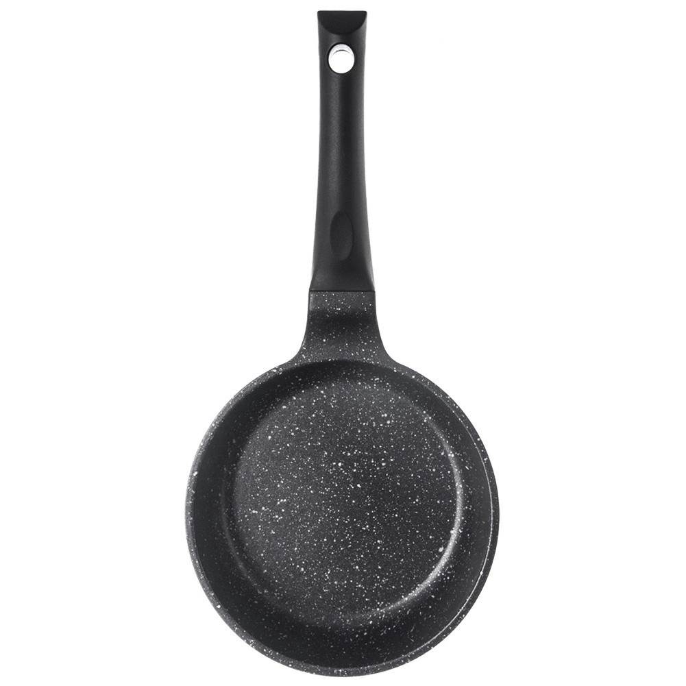 Cette poêle durable en fonte d’aluminium combine une répartition rapide de la chaleur avec un revêtement granit antiadhésif Pfluon Granit de haute qualité, sans PFOA ni PTFE. Parfaite pour cuire des œufs, de la viande, des légumes et de petites crêpes – taille idéale pour un petit déjeuner rapide ou une portion individuelle.