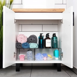 Ajustez en continu la largeur de 34,5 à 48 cm, pour adapter facilement l’étagère à la plupart des placards et rayonnages. Solution idéale pour optimiser l’espace sans perçage.