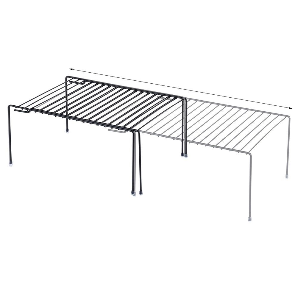 Tirez le meilleur parti de chaque étagère. Cette étagère métallique extensible au noir élégant divise efficacement la hauteur du placard en deux niveaux, pour ranger vaisselle, boîtes ou verres de manière claire et sûre. Grâce au réglage continu de la longueur de 34,5 à 48 cm, vous l’adaptez facilement à des placards et étagères de différentes largeurs.