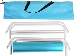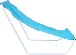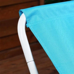La chaise longue est conçue pour un repos confortable en extérieur. Le cadre métallique blanc résistant et le tissu polyester robuste de couleur bleue assurent stabilité et confort en position de relaxation basse. Grâce à son mécanisme de pliage ingénieux, elle se range facilement dans le sac fourni et vous accompagne à la plage, en pique-nique ou en vacances.