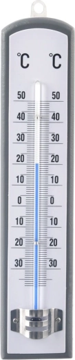 Thermomètre analogique classique pour mesurer la température à l’intérieur comme à l’extérieur. Il dispose d’une échelle claire en °C de -38 °C à 50 °C, d’un corps en bois au décor gris et de la possibilité de l’accrocher au mur. Idéal pour le balcon, la terrasse, la cuisine et le jardin.