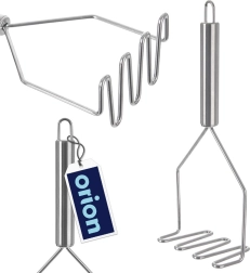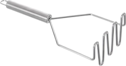 Presse-purée pratique en acier inoxydable de 24 cm avec surface de travail 10,5 × 6 cm pour un écrasement rapide et homogène. Grâce à sa construction tout métal, il est résistant, facile à nettoyer et compatible lave-vaisselle. La poignée ergonomique avec œillet permet une prise en main confortable et un suspendu sur barre. Idéal pour une purée lisse de pommes de terre, légumes et fruits.