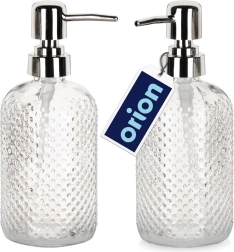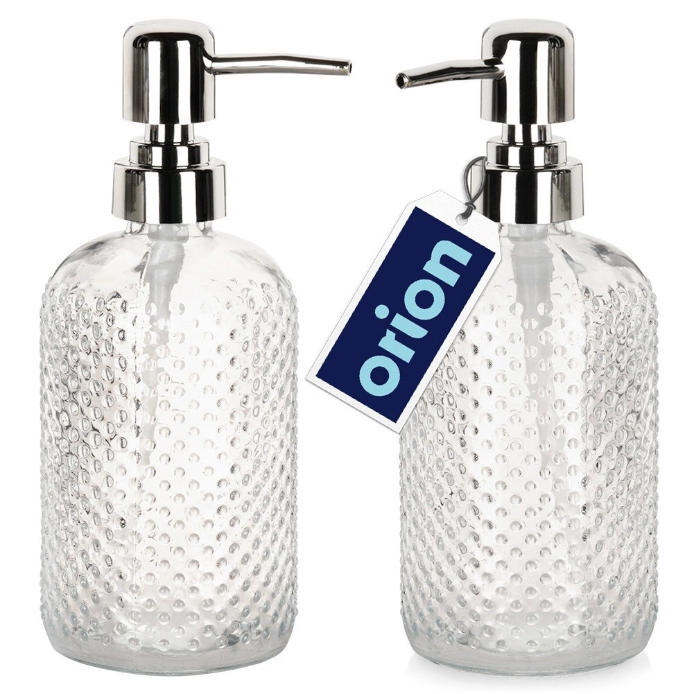 Élégant distributeur de savon en verre d’une capacité de 430 ml, en verre transparent de qualité avec surface décorative et pompe argentée. Idéal pour la salle de bains comme pour la cuisine, il permet un remplissage facile, un contrôle du niveau grâce au corps transparent et offre un design moderne ainsi qu’un dosage pratique et hygiénique du savon liquide ou du liquide vaisselle.