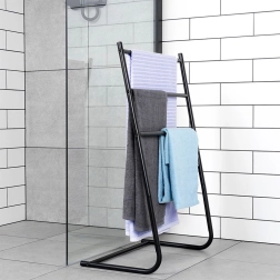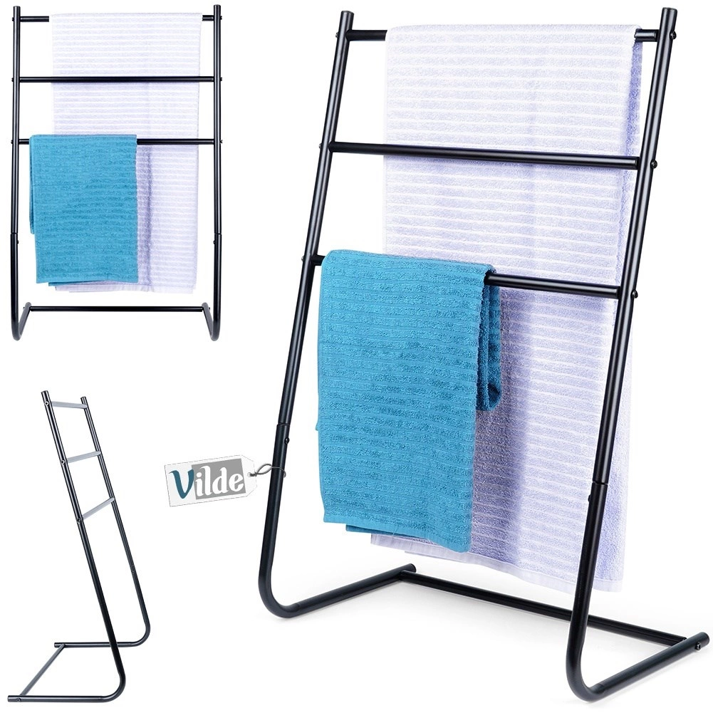 Grâce à ses trois niveaux, vous pouvez étendre les serviettes pour qu’elles sèchent plus rapidement et restent fraîches. Le design loft minimaliste en noir mat convient aux salles de bain modernes comme classiques et sert également d’élément décoratif.