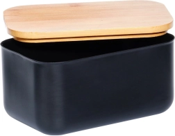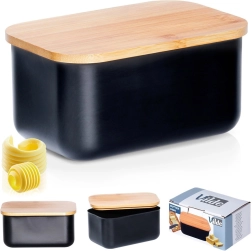 Élégant beurrier noir en acier avec couvercle en bambou naturel, il garde le beurre frais plus longtemps et prêt à être servi. Il possède des dimensions compactes de 15 × 10 × 7,5 cm et un design intemporel qui convient à toute cuisine. Fabrication robuste, couvercle pratique pour préserver la fraîcheur et entretien facile en font un accessoire idéal pour la table comme pour le réfrigérateur.