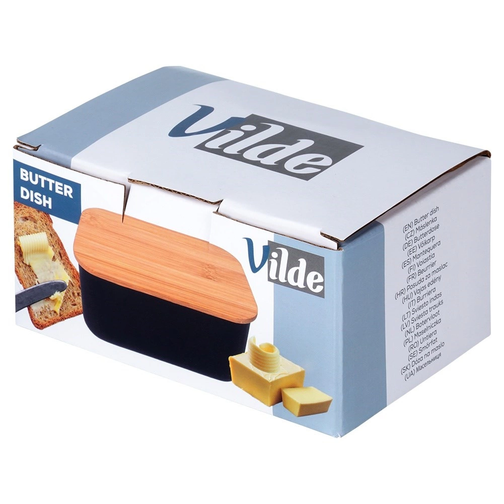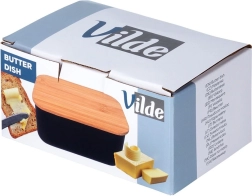 Ce beurrier élégant est fabriqué en acier de qualité avec une finition noire mate et complété par un couvercle en bambou. Il allie ainsi esthétique moderne et fonctionnalité : il protège le beurre de l’air et des odeurs du réfrigérateur pour qu’il reste frais et savoureux plus longtemps.