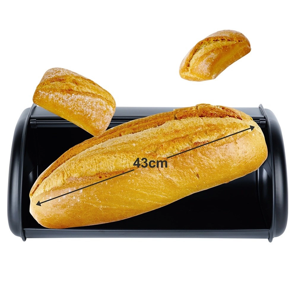 Élégante boîte à pain noire en acier inoxydable qui garde vos viennoiseries fraîches plus longtemps. Grâce au couvercle coulissant, l’accès est rapide et pratique, le métal peint par poudrage assure la durabilité et le grand format accueille pain, petits pains et pâtisseries de différentes tailles. Un accessoire stylé qui s’intègre parfaitement à toute cuisine.