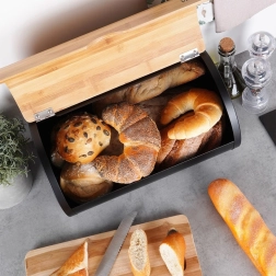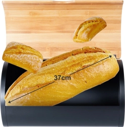 Élégante boîte à pain en acier noir avec couvercle en bambou naturel qui garde la pâtisserie fraîche plus longtemps, la protège de l’air et de la poussière tout en apportant une touche de style à toute cuisine. Sa construction robuste assure une grande durabilité, l’intérieur spacieux accueille différents types de pains et viennoiseries, et le couvercle pratique permet une ouverture rapide et confortable.