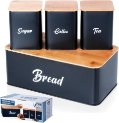 L’ensemble est idéal pour un usage quotidien – vous pouvez facilement ranger dans la boîte pain, baguettes, petits pains et viennoiseries. Les boîtes ont des dimensions compactes, elles n’occupent donc pas inutilement l’espace du plan de travail tout en créant un look de cuisine élégant et uniforme.