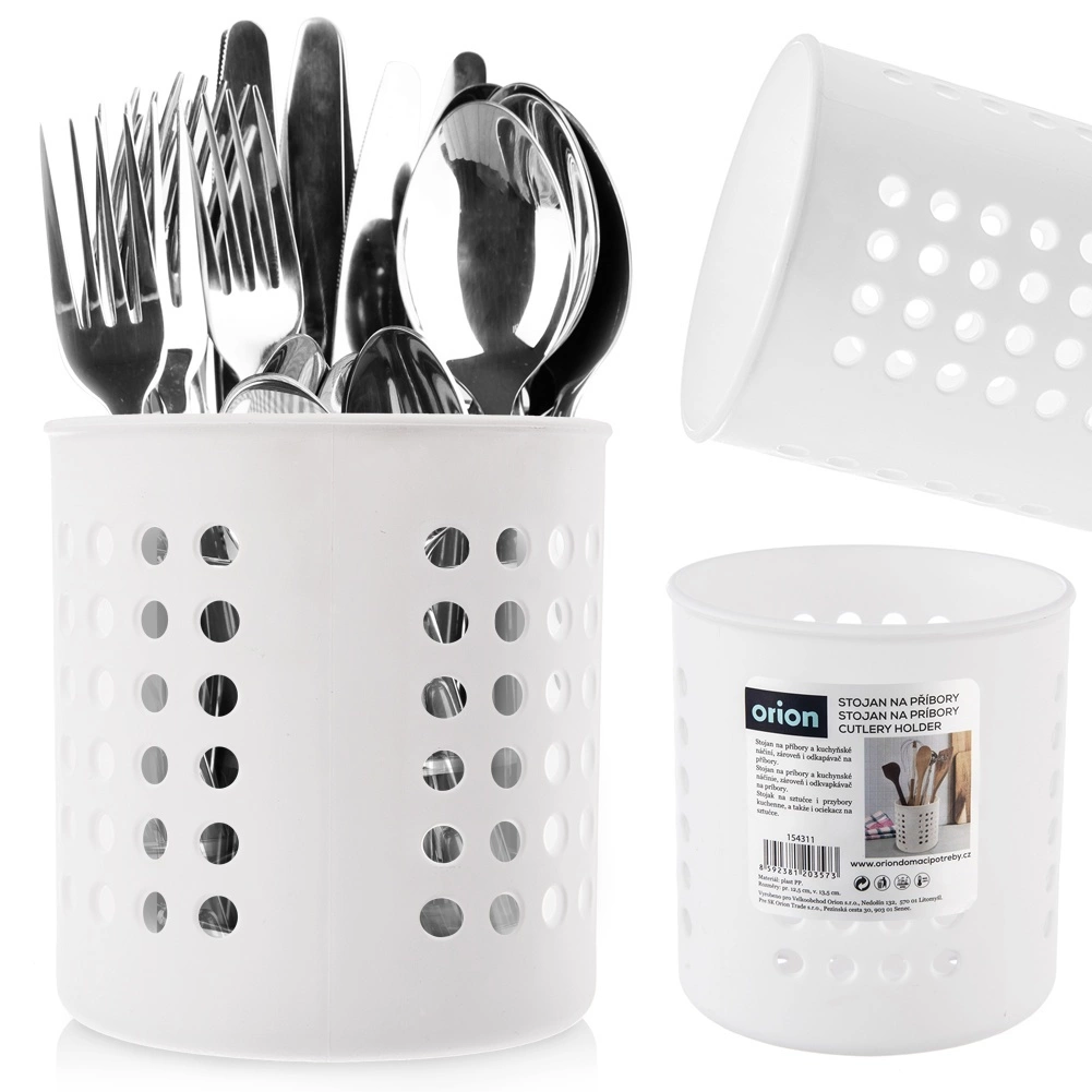 Gardez une cuisine rangée avec ce support polyvalent qui fait office à la fois d’égouttoir à couverts et d’organisateur d’ustensiles de cuisine. La perforation sur tout le pourtour et au fond facilite l’évacuation de l’humidité, pour que cuillères, fourchettes, couteaux et fouets sèchent plus vite et restent stockés de façon hygiénique.