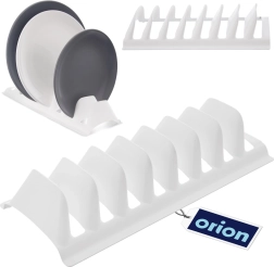 Organisateur de cuisine pratique pour faire sécher et ranger jusqu’à 8 assiettes ou couvercles de manière ordonnée. Grâce aux cloisons séparatrices solides, la vaisselle reste bien stable en position verticale, ce qui permet d’économiser de la place dans le placard, le tiroir ou sur le plan de travail et évite les rayures. Plastique léger mais résistant de couleur blanche, facile à nettoyer et compatible lave-vaisselle.