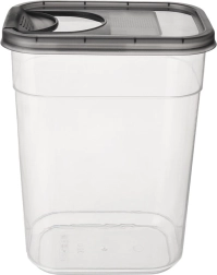 Cette boîte de la gamme Grey est idéale pour le stockage quotidien d’aliments tels que pâtes, café, muesli, noix, légumineuses ou céréales. Grâce au corps transparent, vous voyez instantanément le contenu et la quantité, tandis que le couvercle étanche avec ouverture doseuse rabattable facilite un versement précis sans désordre.