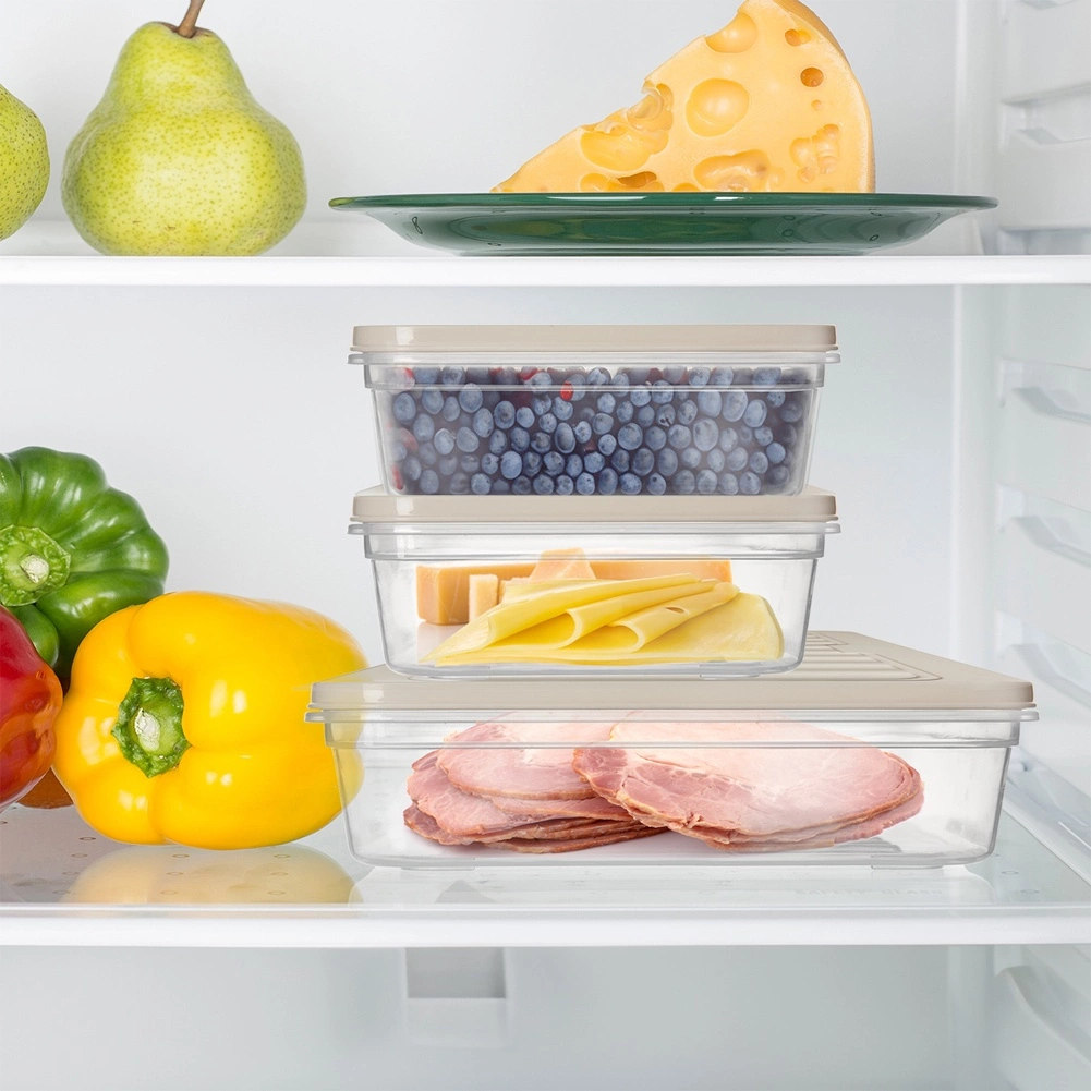 Grâce à sa résistance thermique de -25 °C à +95 °C, il convient au congélateur et au réfrigérateur, passe au lave-vaisselle et peut être utilisé au micro-ondes sans couvercle. Les parois transparentes permettent une identification rapide sans ouvrir, et la forme empilable apporte de l’ordre dans le réfrigérateur comme dans le garde-manger.