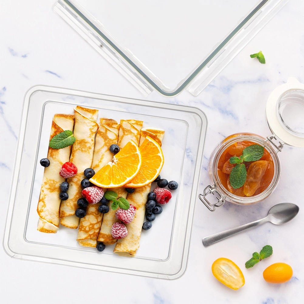 Cette boîte alimentaire carrée et basse de 900 ml offre une conservation fiable et hygiénique de vos plats. Le corps transparent permet de vérifier le contenu d’un coup d’œil, tandis que le couvercle robuste avec 4 clips et joint en silicone garantit l’étanchéité et réduit les odeurs.