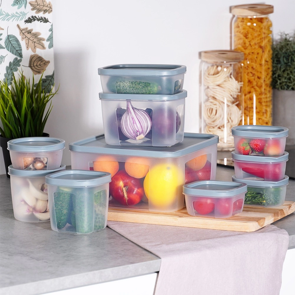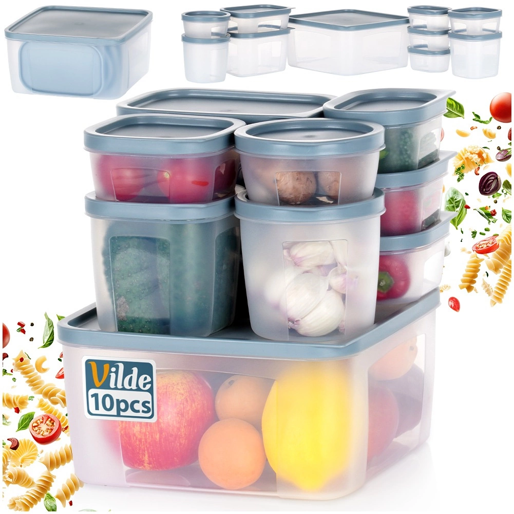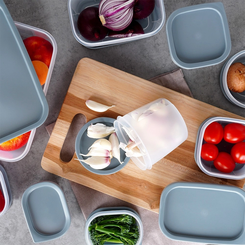 Pratique ensemble de 10 boîtes alimentaires avec couvercles gris pour un rangement propre et hygiénique en cuisine. Tailles variées pour fruits, légumes, encas et produits secs, boîtes hermétiques, empilables et adaptées au réfrigérateur, congélateur et lave-vaisselle.