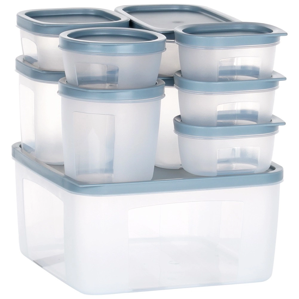 Toutes les petites boîtes peuvent être rangées dans le plus grand récipient. La forme empilable économise de la place dans le réfrigérateur, le congélateur et les placards.