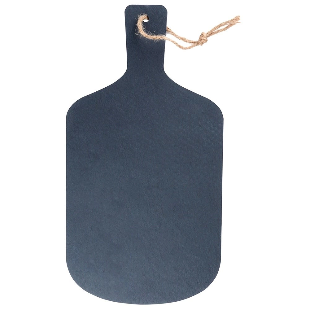 Cette planche en ardoise naturelle rehausse la présentation de vos mets. Grâce à sa poignée, elle se transporte aisément et son ouverture avec cordon permet un accrochage facile. Sa surface pierre texturée et ses bords adoucis offrent un style moderne et intemporel.